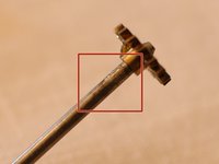 Inspect the shaft. As you can see here, the area just inside of the brass gear is very shiny compared to the rest of the shaft. It has been worn smooth by years of friction. This is what slips underneath the grey gear, leading to the odometer not turning.