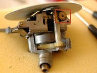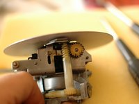 This brass gear is the item we are interested in. It is attached to a shaft that is responsible for turning the main odometer gear.
