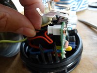 Carefully embed the thermal contact in conducting paste. Then press bottom into body until you hear a clic three times. At last switch must be pressed in.