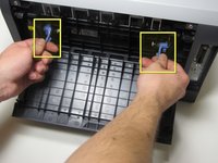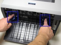 • The fuser cover, which the tabs are connected to, does not come completely out of the printer because it is attached to the bottom by a hinge.