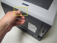 • Located on the back of the printer, open up the cover by grabbing onto the tab and pulling down.