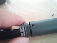 This gets a bit tricky, as we will need to slide the round flange off the top of the tube, in order to push the bottom tube all the way to expose the connectors.