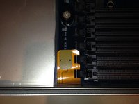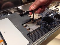 Using the spudger, lift the CD/DVD connector by the CPU A RAM slots.