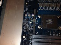 Using a 3.0mm Hex wrench (Allen wrench), loosen the 4 screws that hold the processor and heatsink down.