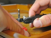 While securing the end of the arm by holding the head in place, use your fingernail to push down on the front edge of the needle.