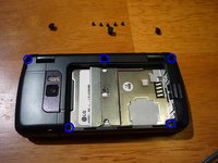 Remove 5 small black screws from the back cover. I used a #00 Philips screwdriver, but a #0 should also work as well.