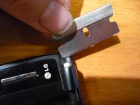 Using the edge of the razor blade or other suitable device, un-stick the earpiece connector from the panel and let it flop free.