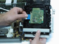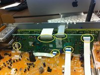 Remove electronic strips on the right, bottom center, top center, and a cable on the left side of the input board.