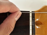 Turn each tuning peg until the holes are perpendicular to the nut.