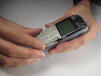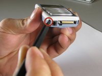 Turn the front of the phone to face you. Find the two small square holes on the bottom left and right sides of the faceplate.