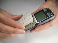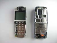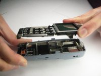 Before reassembling, identify the two black plastic tabs on the screen/speaker, as seen in the 2 photos. When replacing the screen/speaker, make sure that these tabs are properly inserted just above the keypad.