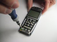 Warning: The middle two screws are attached to the base of the phone with two black plastic rings. Use tweezers to remove the screws carefully to avoid breaking the plastic rings