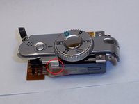 Disconnect the two ribbon circuits on the front of the camera.