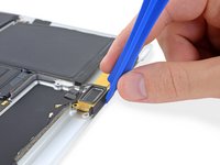 Use a spudger to disconnect the left speaker cable connector by prying it straight up from the logic board.