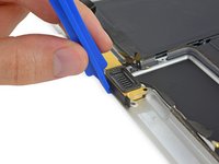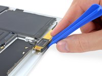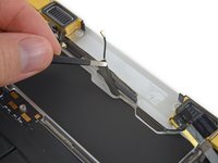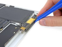 Carefully slide the flat end of a spudger underneath the display cable to separate the adhesive holding it to the lower case.