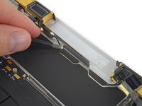 Carefully peel away the audio board ribbon cable from the adhesive securing it to the lower case.
