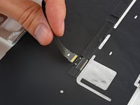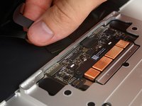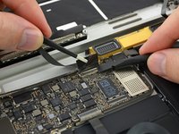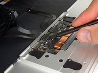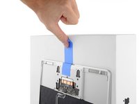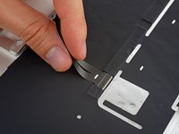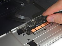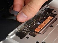 Use a pair of tweezers to remove the tape covering the keyboard ribbon cable connector on the trackpad.