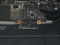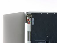 Remove the two 3.3 mm T5 Torx screws securing the display cable assembly.