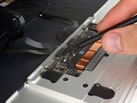 Use the flat end of a spudger to flip open the retaining flap on the display cable connector.