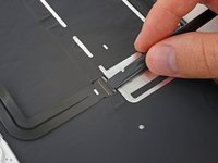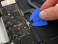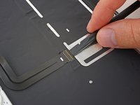 Carefully slide the flat end of a spudger underneath the display cable to separate the adhesive holding it to the lower case.