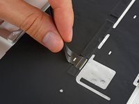 If so, use the flat end of a spudger to hold down the retaining flap while peeling the tape away with the tweezers.