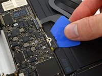 As an added precaution, you may physically disconnect the battery by inserting a battery isolation pick between the logic board and the battery connector.