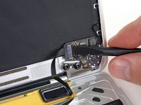 Remove the two 3.2 mm T5 Torx screws securing the audio jack board to the case.