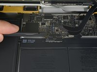 Remove the single 2.9 mm T5 Torx screw securing the battery connector to the logic board.