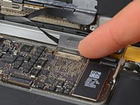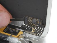 Use the flat end of a spudger to flip open the retaining flap on the display cable connector.