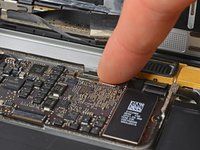 Remove the single 2.9 mm T5 Torx screw securing the battery connector to the logic board.