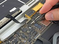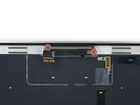 Remove the two 3.3 mm T5 Torx screws securing the display cable assembly.