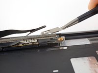 Use tweezers to peel back the tape covering the trackpad cable ZIF connector.