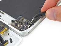 Remove the two 3.2 mm T5 Torx screws securing the audio jack board to the case.