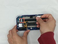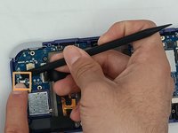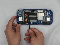Using a spudger, undo the ribbon cable clip connected to the main PCB along with the joystick ribbon cable.