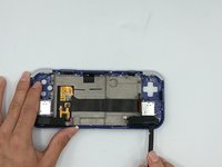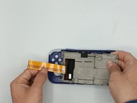 Using a spudger, undo the ribbon cable clip connected to the main PCB along with the joystick ribbon cable.