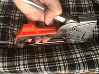 7. Staple the fabric onto the cushion so it is secure enough that it won’t come loose.