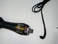 Next with your free hand carefully pull the cord out of the port of the dryer handle.