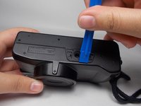 Continue to use the the opening tool to insert it and lift right next to the strap of the camera.