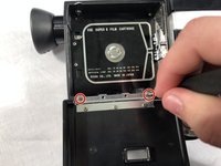 Remove the two screws from the center of the spring plate, located on the camera side of the film cartridge door hinge, with a Phillips #00 screwdriver.
