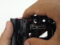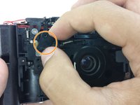 Lift the button mechanism up carefully, removing the spring at the top of the mechanism from where it is attached to the camera body.