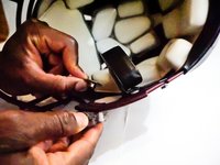 Prepare to reattach the quick release attachments on the sides of the helmet by inserting the top releasing mechanism into the plastic fastener and aligning the back washer on the inside of the helmet.