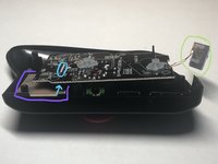 Remove three PH0 screws, two that hold the ZR button plastics and one on the top main board.