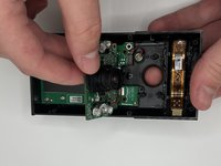 Flip the device over and then carefully press on the camera lens to remove the camera and the attached mother board from the device.