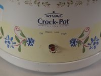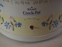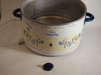 Turn the crockpot right side up again, and pull the plastic knob of the heating adjuster off by hand.
