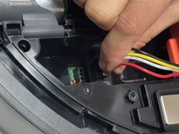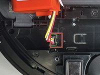 Using moderate pressure, squeeze and pull on the four-wire connector to disconnect the battery from the robot vacuum.