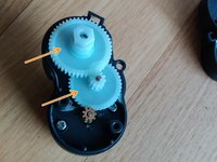 Pull the 2 white plastic gear wheels off to the top (potentially inspect those for damage while it's open anyway).