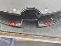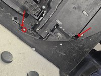 Remove the marked screws, then remove the top cover of the bumper, then the bumper itself.