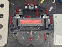 Remove the 2 screws hidden by the main brush assembly.