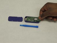 Place the blue plastic opening tool into one of the cracks on the back of the Roku to pop open the Roku Streaming Stick 3500R. Be careful not to break anything while removing the back.