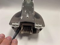 Remove the 4-pronged adaptor from inside the iron by grabbing the black plastic piece and pulling straight out.